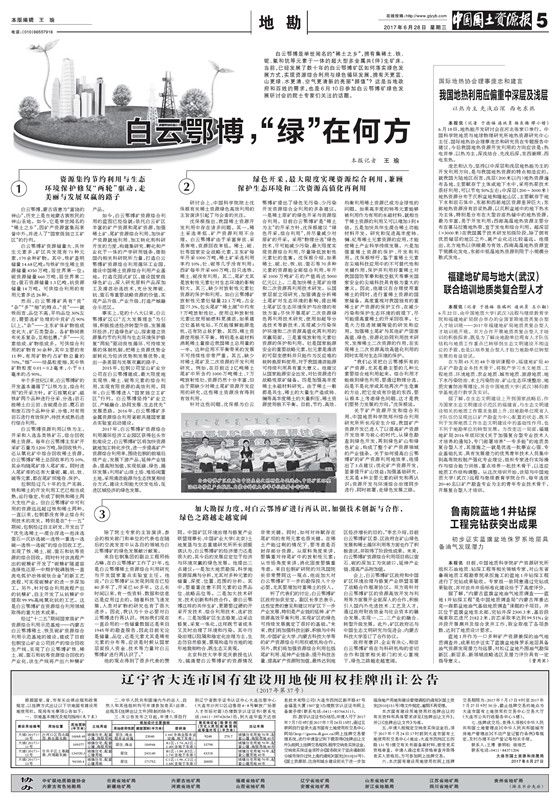 2017年6月28日《中國(guó)國(guó)土資源報(bào)》第5版《魯南院藍(lán)地1井鉆探工程完鉆獲突出成果》
